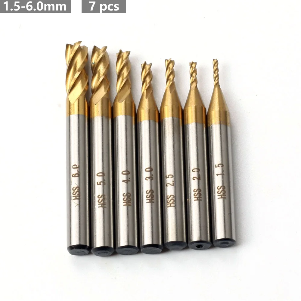 4-Flute Milling Cutter 1.5-10.0 mm CNC Machine Tool Aluminum Milling Cutter Metal Milling Cutter HSS Milling Cutter TiN Coated End Mill