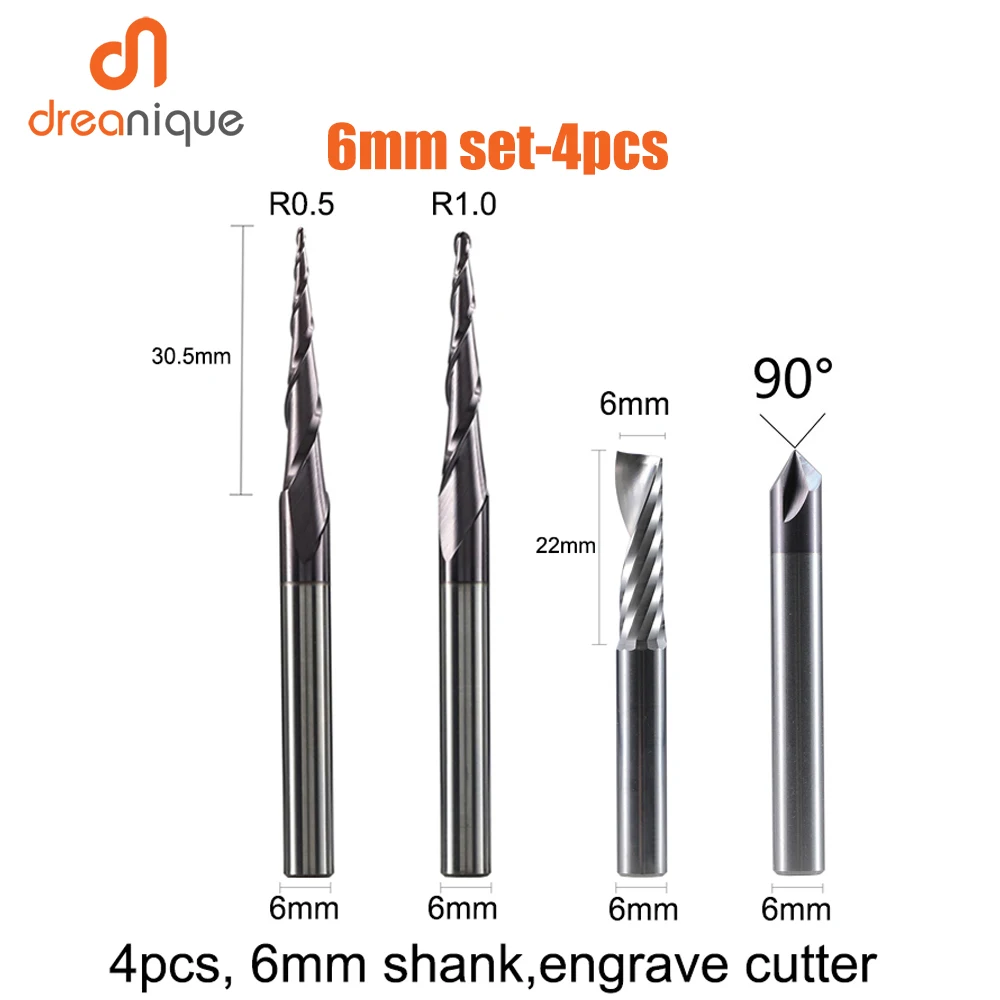 CNC Solid Carbide engrave milling cutter woodwork set 4mm shank router bits for wood carving End Mills