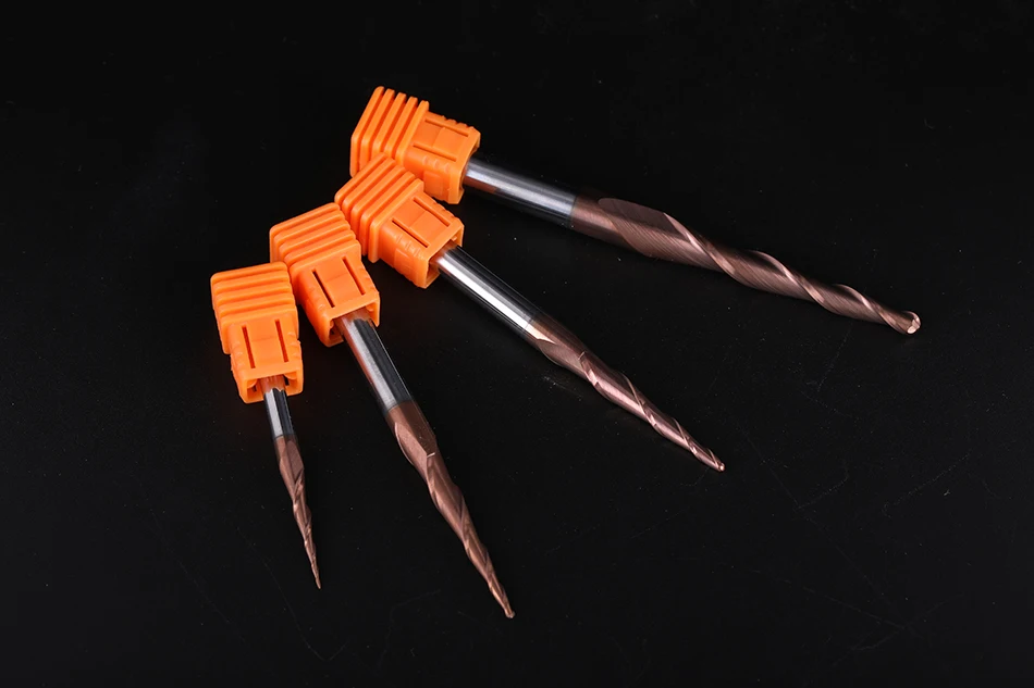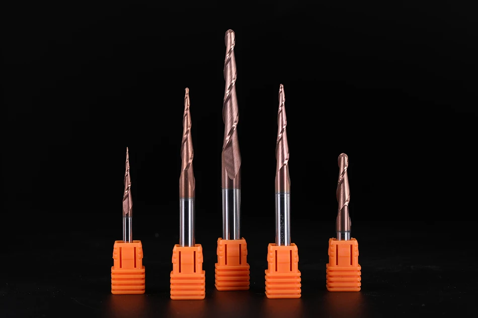 5pcs/lot HRC62 Coated D4 D6 Solid Carbide 4mm 6mm Ball Nose Tapered End Mills Router Bits cnc Taper Wood Metal Cutters cone millShank Diameter:4mm 6MM