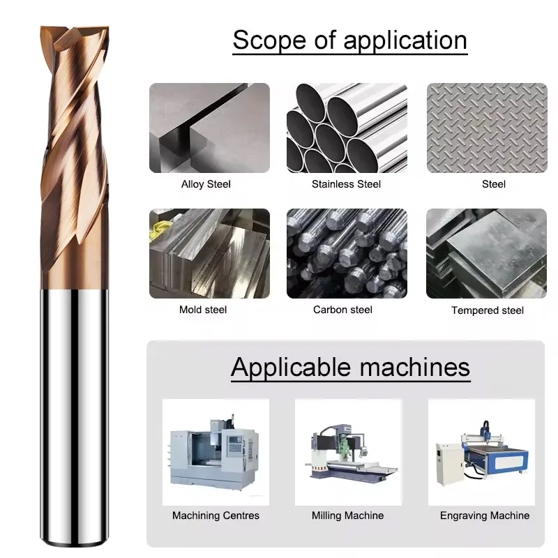 AZZKOR 10CPS Endmills Tools Milling Cutter 50.0-75.0MM Length Tungsten Steel Car