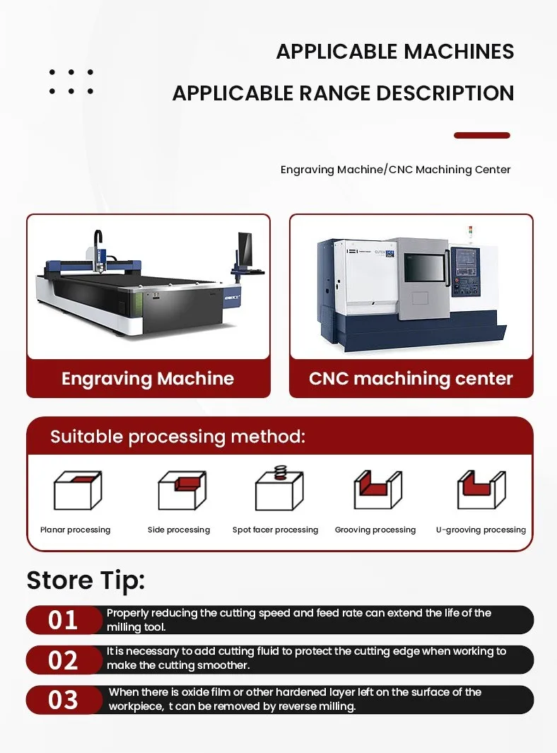 Cutting material: garbon steel/salloy steels/tool steels/alloy steels/pre-hardened steel