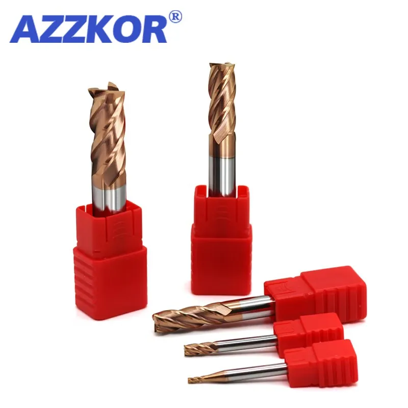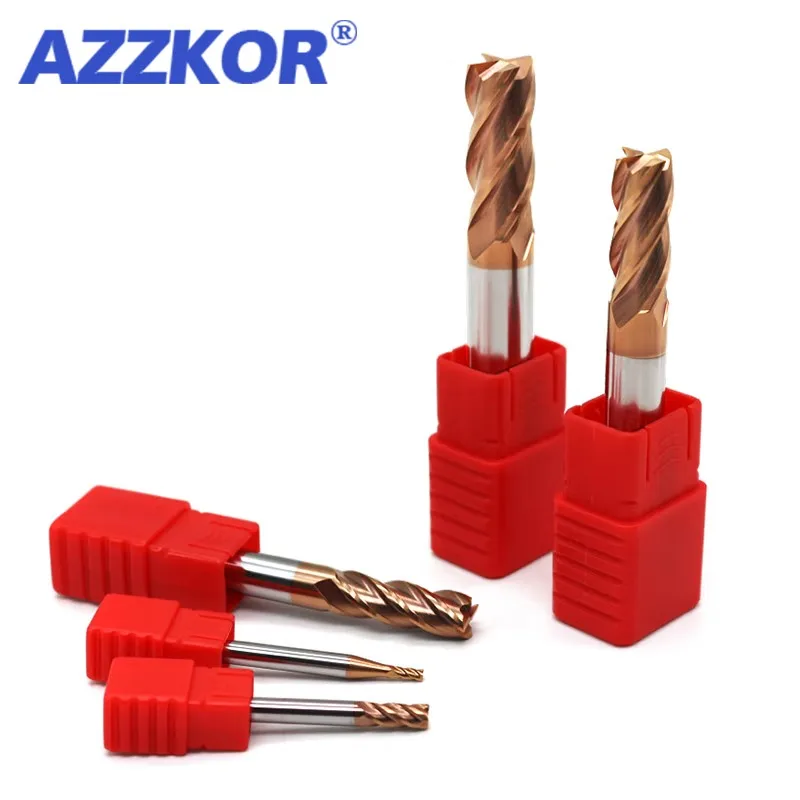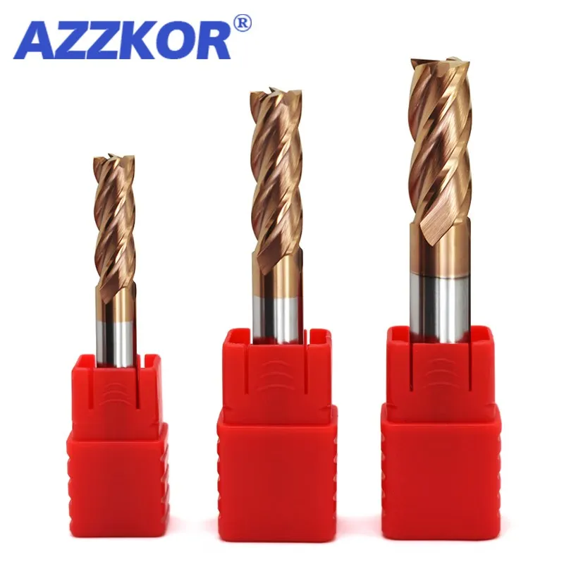 AZZKOR HRC55 4-Shank 10PCS Milling Cutter Tungsten Steel Carbide Alloy Coating 4