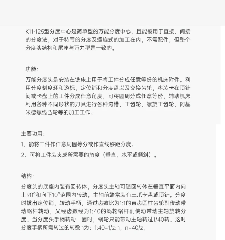 the dividing head for indirect dividing in any division indexing 2-50, 51-380