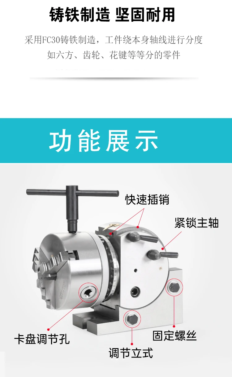 BS-0 Universal Dividing Head Precision Tailstock 100MM 3-Jaw Lathe Chuck Dividing Plates CNC Milling Head Tail Stock