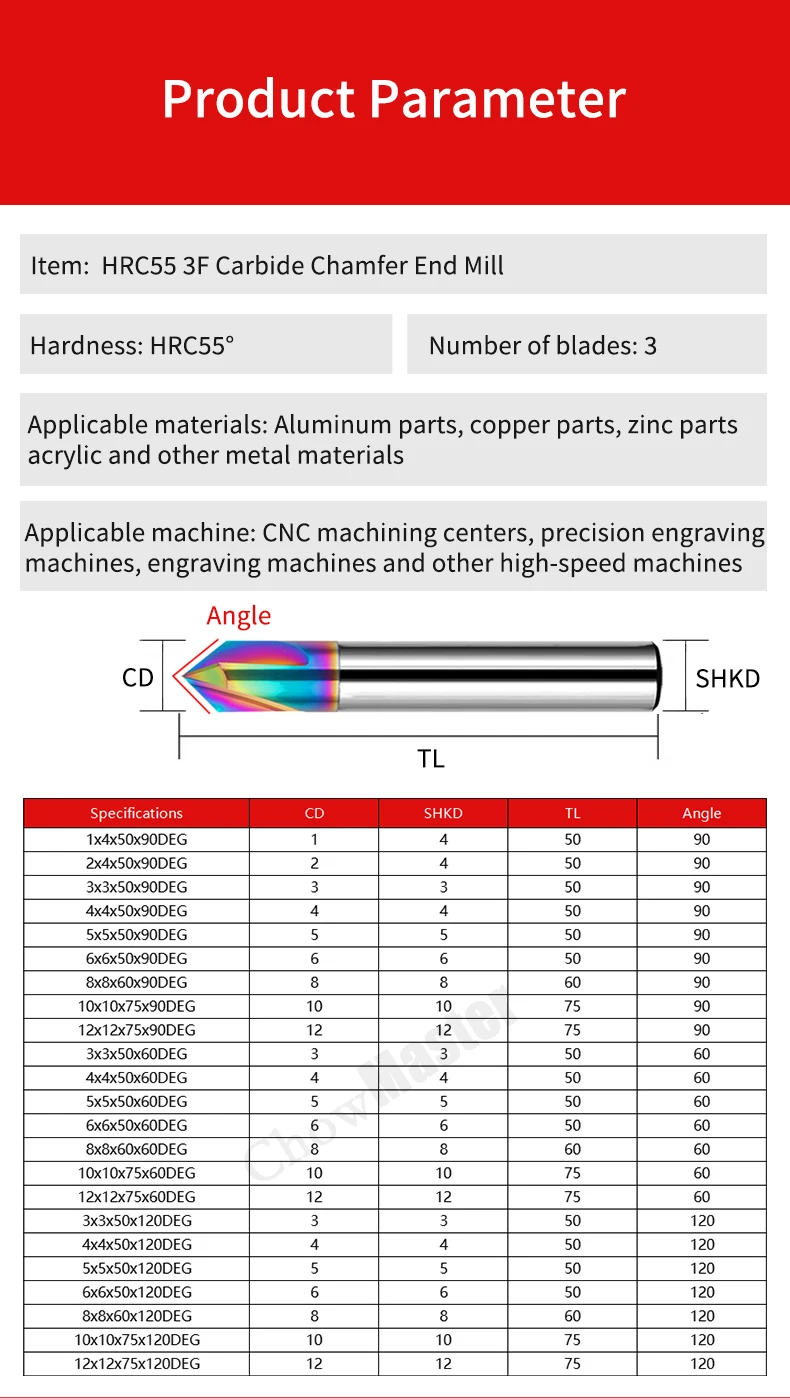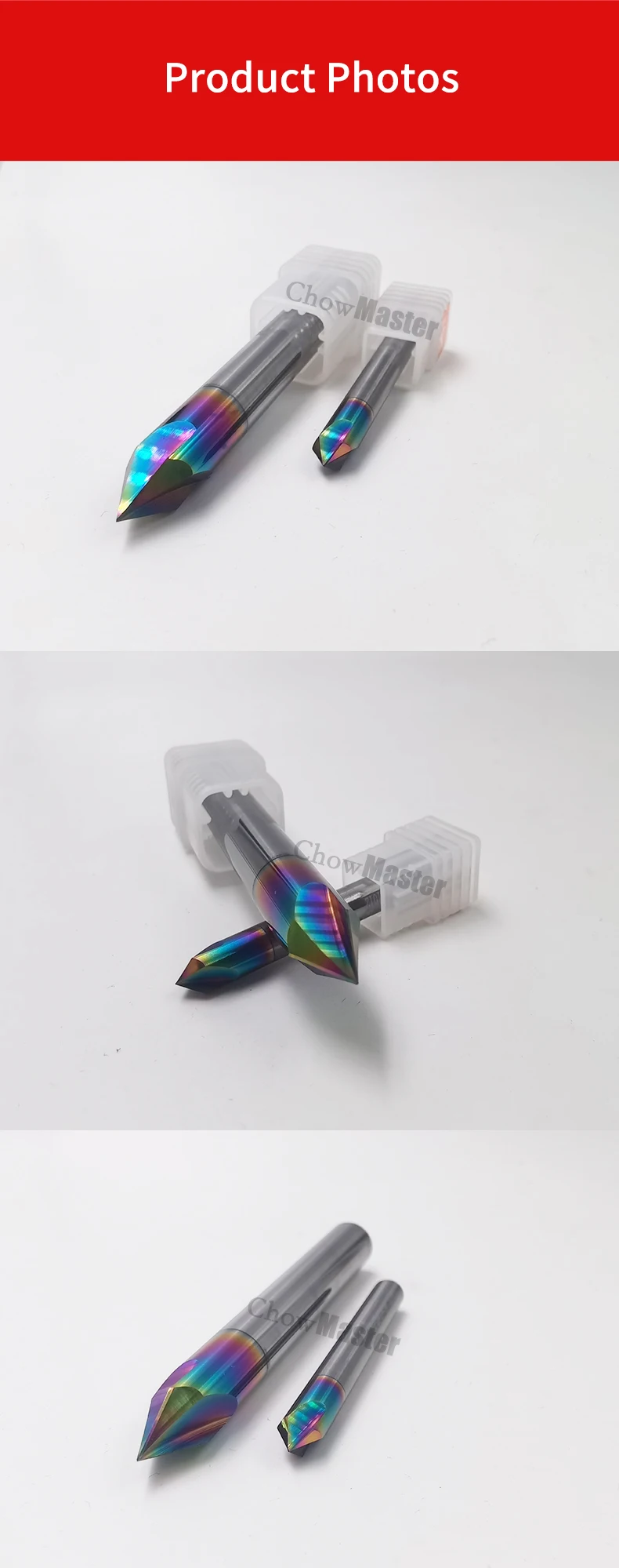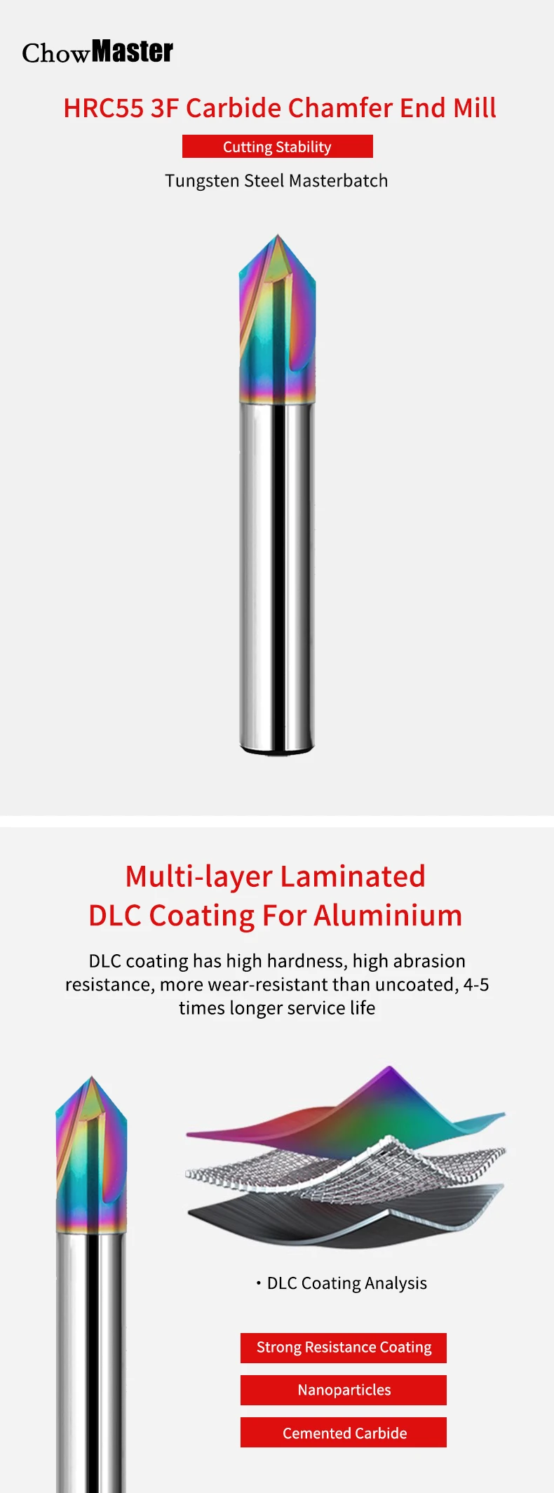 Chowmaster Carbide Chamfer Milling Cutter HRC55 3 Flute DLC Coated Aluminum End Mill 60 90 120 Degree Router Bit for Al Copper