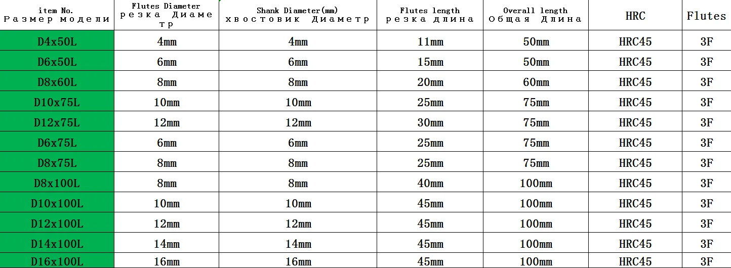 Flutes Diameter: 4-20MM