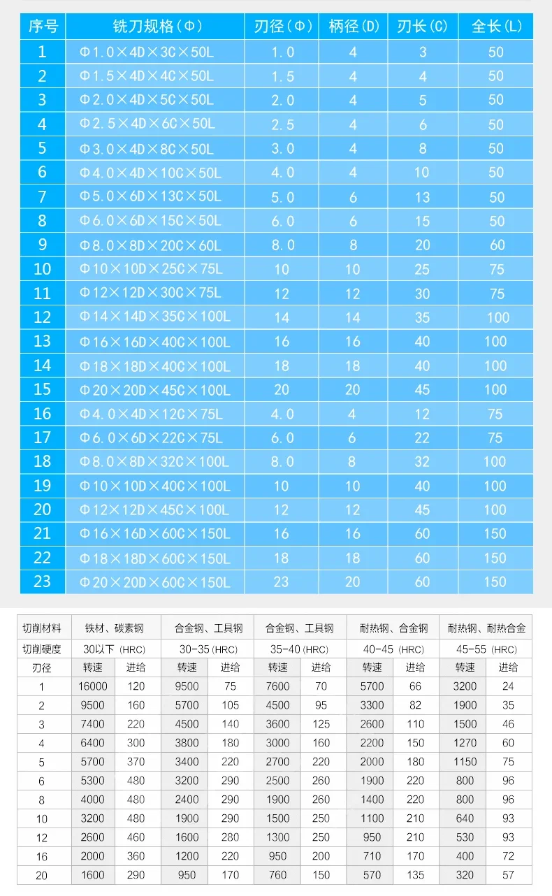 Applicable processing material hardness: HRC35 ° - HRC50 °