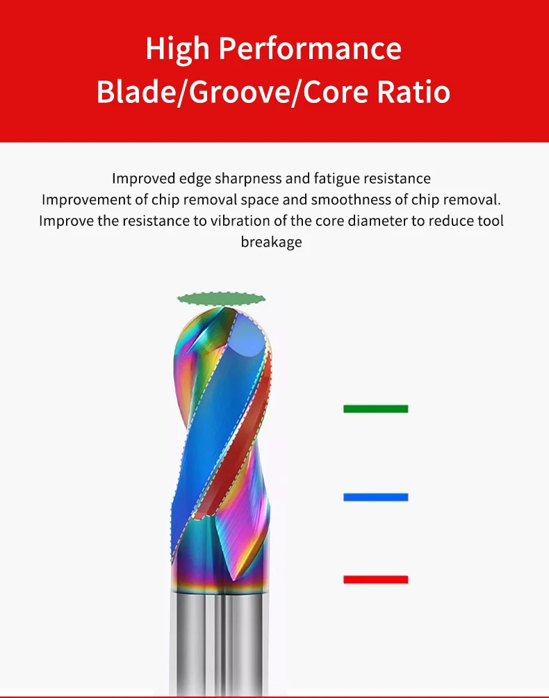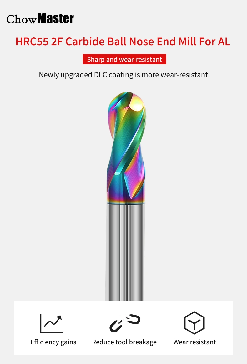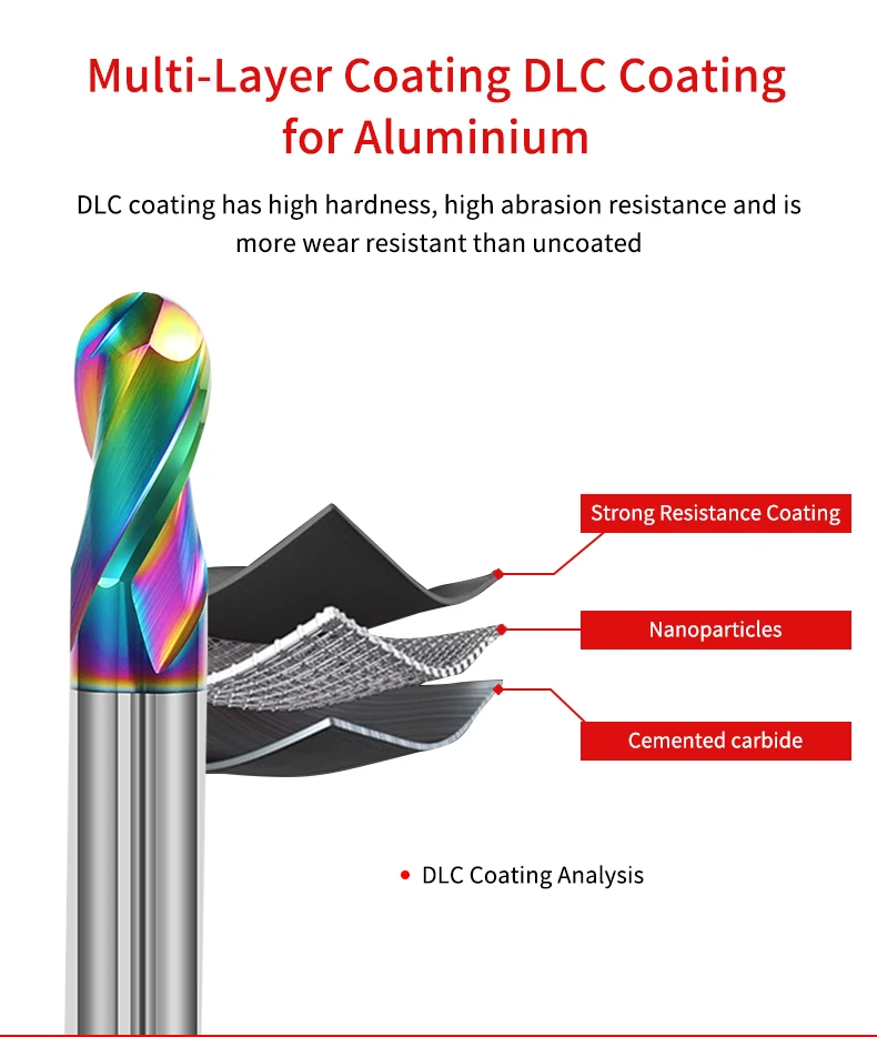 HRC55 2 Flutes Ball Nose Aluminum Carbide End Mill DLC Coating R0.5-R6 Tungsten Steel Milling Cutter CNC Tools
