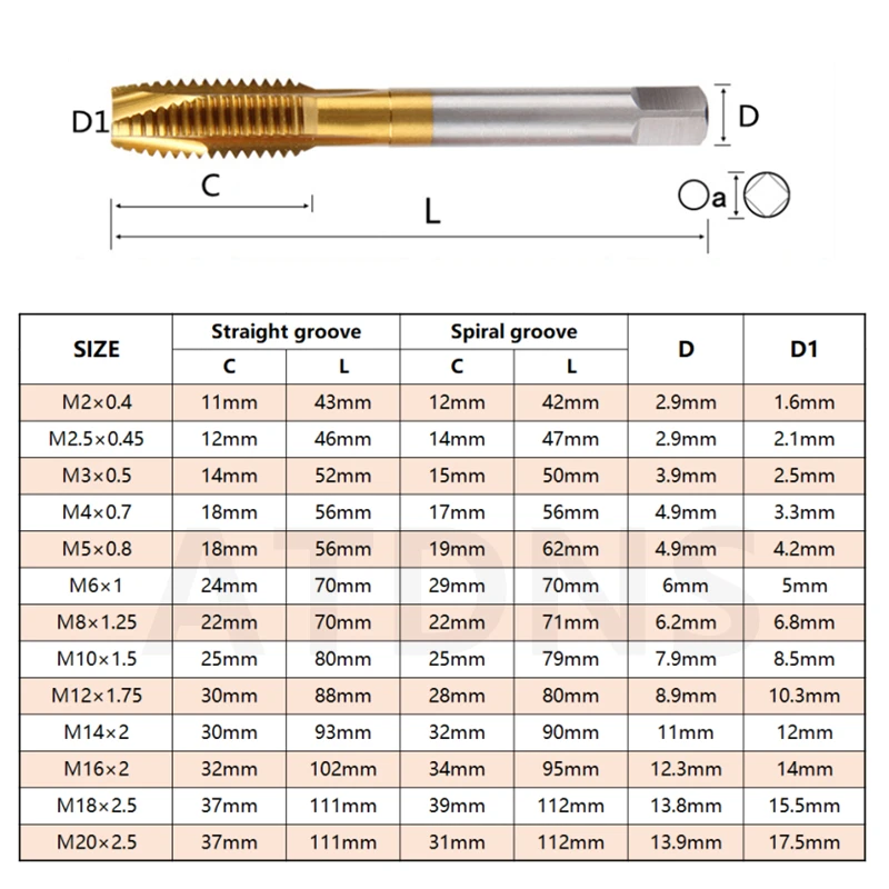 Self-tapping Drill Bit For Screw Machine, Spiral Straight Groove, Tapping M2-M24 Titanium-plated Drill Bit CNC Tool Tap