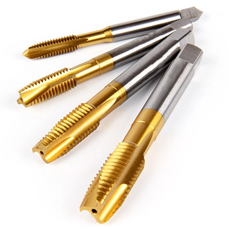 Using industrial-grade high-speed steel material, tapping is easy, chip removal is smooth, and the surface layer is plated with titanium to increase strength and has good heat resistance and toughness. Suitable for drilling machines, tapping machine tools, machining centers, milling machines and other machines.