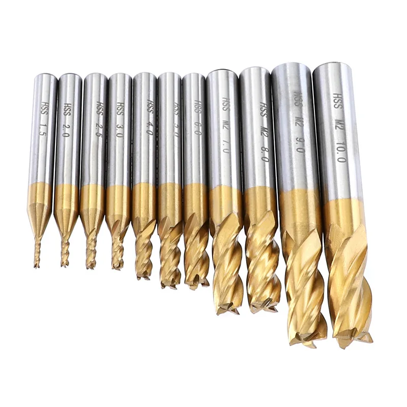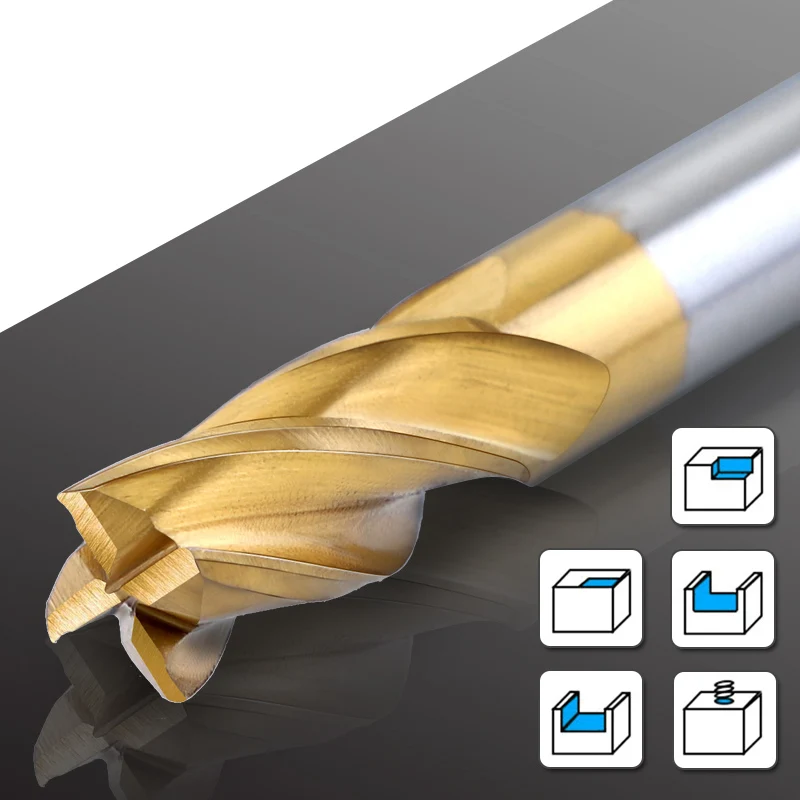 Wood Milling Cutter Set High Speed Steel Titanium-Plated 4-Flutes CNC End Mill H