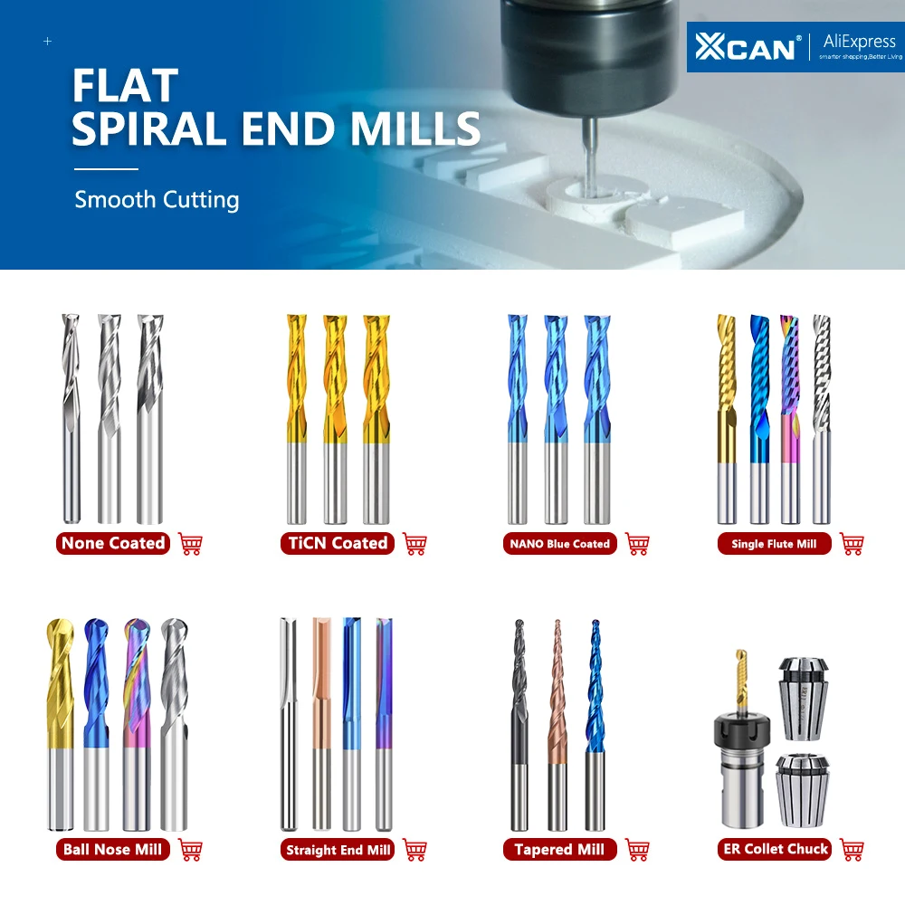 XCAN 10pcs Diameter 2.0mm 2 Flute Flat End Mill 3.175mm Shank Spiral Router Bit CNC Micro End Mills Carbide Milling Cutter