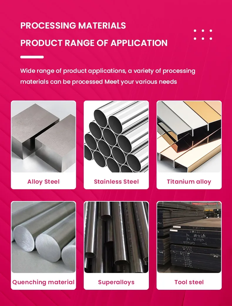 Applicable materials: Titanmium Alloy, Superalloy, Die steel, 304 Stainless steel,